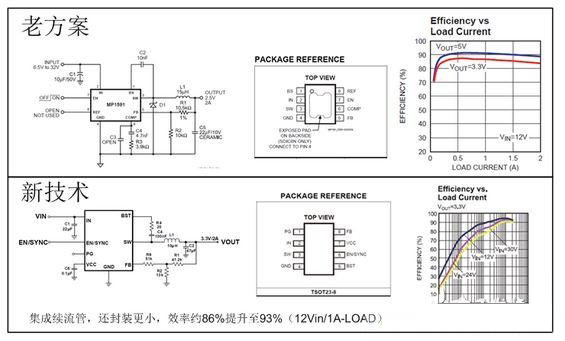 當今社會科技的發(fā)展是日新月異,電子元器件的更新?lián)Q代的時間越來越短,時刻有一些高技術(shù)、小型化、低功耗、高集成低成本的物料踴躍市場,讓電源模塊產(chǎn)品可以設(shè)計得更高功率密度、更高性能品質(zhì),成本亦能更低。例如,當前片式阻容元件的主流產(chǎn)品的尺寸是0603型、0402型,正朝著外形尺寸更小的0201型和01005型方向發(fā)展,像106K貼片陶瓷電容已做到0805封裝;SO-8封裝IC的引線綁定工藝改成套裝工藝技術(shù),可設(shè)計成TSOT23-8更小封裝,功耗低散熱好,功率密度反而提升了2倍以上;和碳化硅二極管(SiC)的極短正向恢復和反向恢復時間、缺少正向恢復和反向恢復電荷特性,使得物料更小封裝尺寸,效率更高,產(chǎn)品設(shè)計更加緊湊。